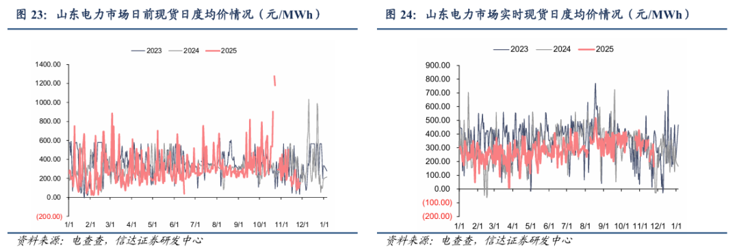 ⚫山东日前现货市场:截至11月28日,山东电力日前现货市场的周度均价为236.86元/MWh,周环比下降6.44%,周同比上升23.3%。