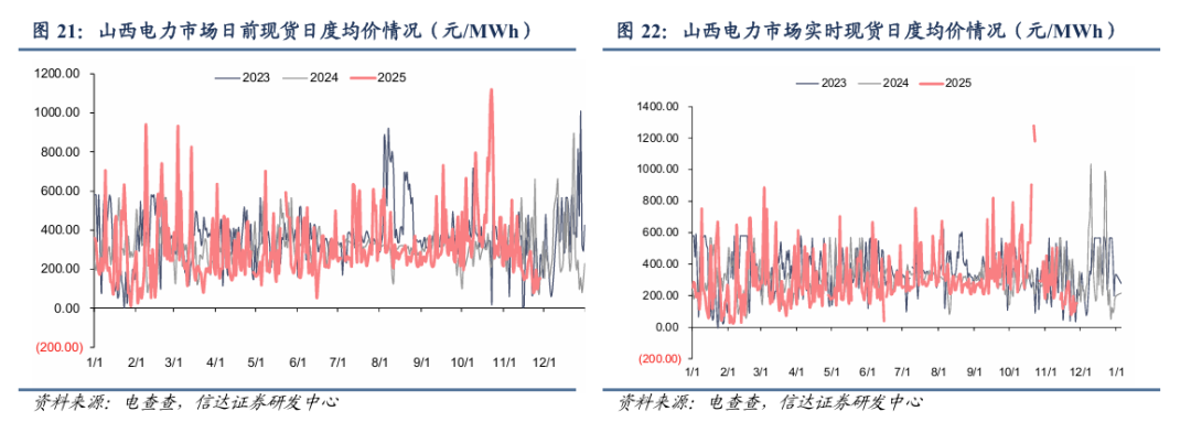 ⚫山西日前现货市场:截至11月28日,山西电力日前现货市场的周度均价为130.48元/MWh,周环比下降31.25%,周同比下降55.6%。