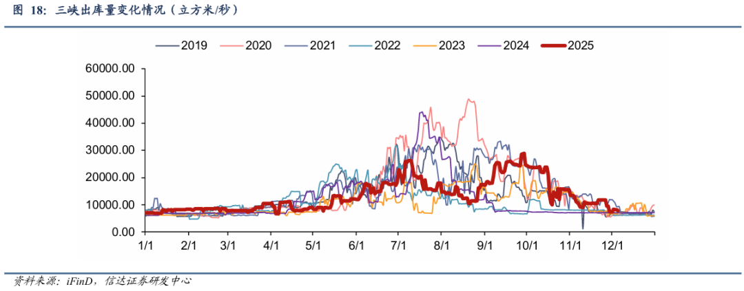 水电来水情况:三峡出库流量周环比减少。截至12月5日,三峡出库流量7800立方米/秒,同比上升12.23%,周环比下降18.15%。