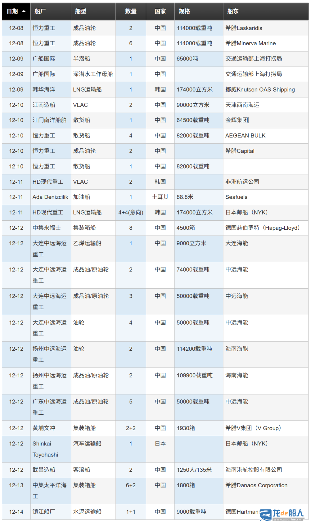 据龙船订单库跟踪统计,上周(12.8-12.14)公布的订单数量为67+9艘。