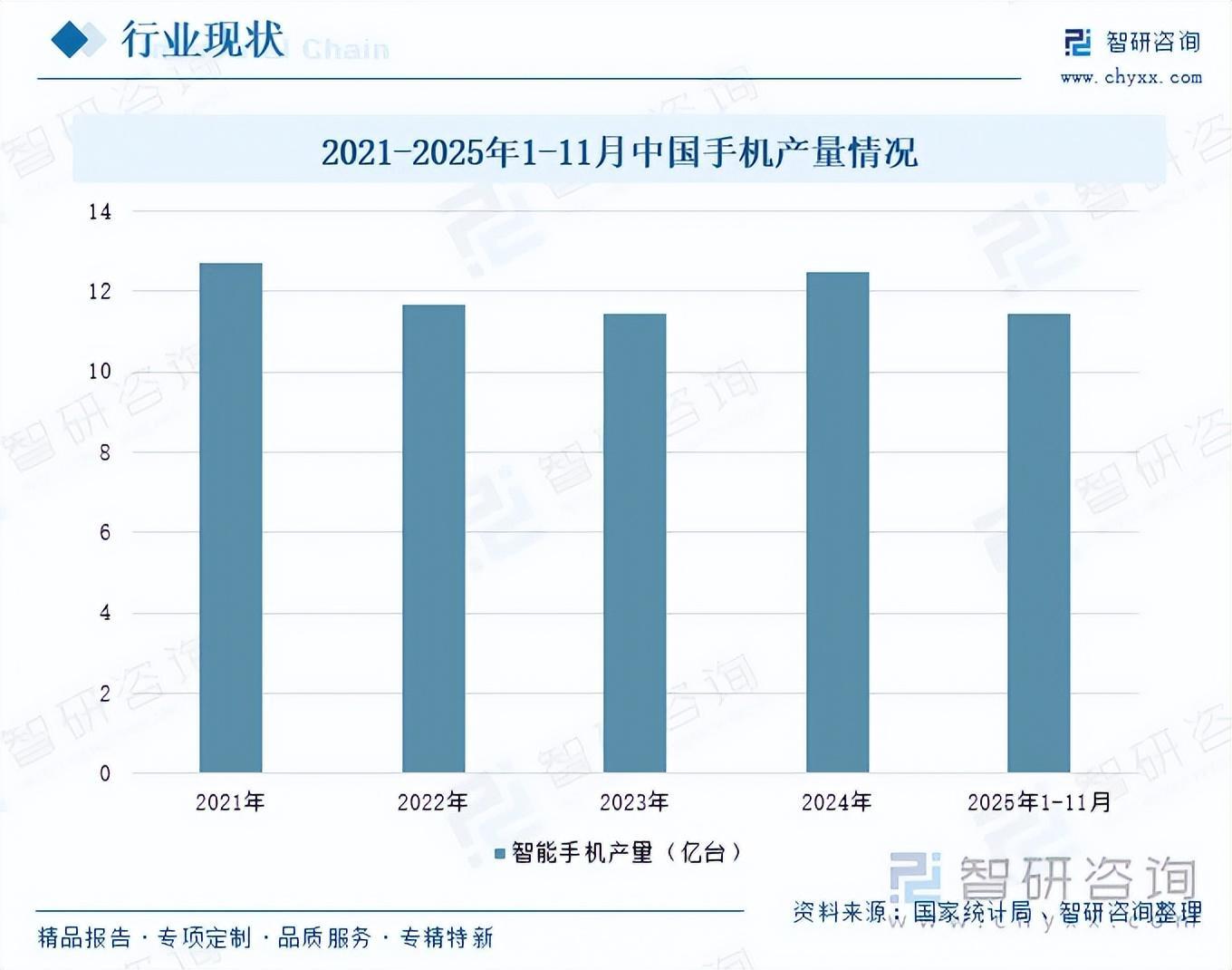 在5G商用深化、折叠屏技术成熟及AIoT融合加速的背景下,手机产业正经历结构性升级。2025年1-11月,中国手机产量为11.43亿台,同比增长2.31%。压电器件作为手机核心功能组件,涵盖微型扬声器、振动马达、压力传感器及加速度传感器等,每部手机需配备多类压电器件以实现通话、触觉反馈、交互感知等功能。