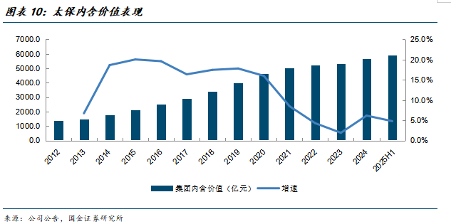 长牛预期净利润预计将向好,营运利润平稳增长。1)归母净利:2018-2024年公司归母净利润年复合增速16.5%,整体保持较好增长,单年度波动主要受权益市场、利率下行等因素影响。25Q1-3归母净利润同比+19.3%,其中Q3同比+35.2%,增速低于同业主要受所得税审慎计提影响,Q3所得税同比增加81.50亿至95.68亿(税率同比提升25pct至34.31%);税前利润超预期,前三季度、Q3单季分别同比+35.4%、+85.7%。2)营运利润:2018-2024年太保营运利润年复合增速3.6%,主要受疫情影响赔付较高。2025H1实现营运利润199.1亿元,同比增长7.1%,恢复稳健增长。