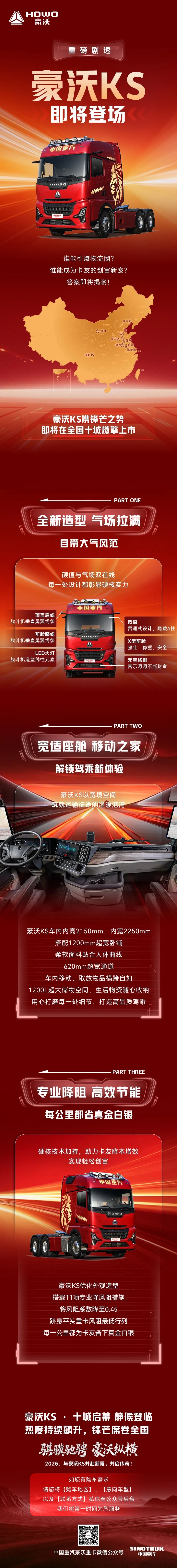 中国重汽豪沃KS近日揭开面纱,以全新造型、宽适座舱和高效节能技术,直指卡友创富痛点。新车不仅拥有媲美战斗机的凌厉设计、堪比“移动之家”的超大空间,更通过11项降阻技术将风阻系数压至0.45,号称“每公里省下真金白银”。它能否真正点燃市场,成为卡友们的创富新宠?答案即将揭晓。