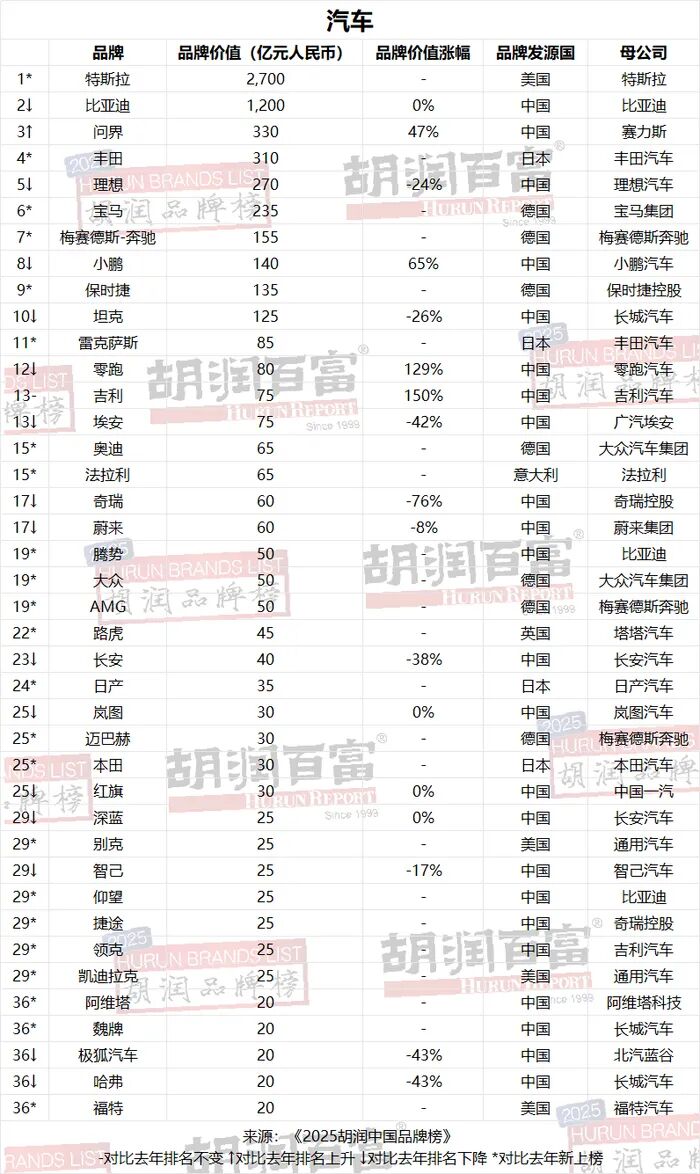 2月3日上午,胡润研究院发布《2025胡润中国品牌榜》。在榜单统计规则调整后,汽车行业成为变动幅度最大的板块之一。