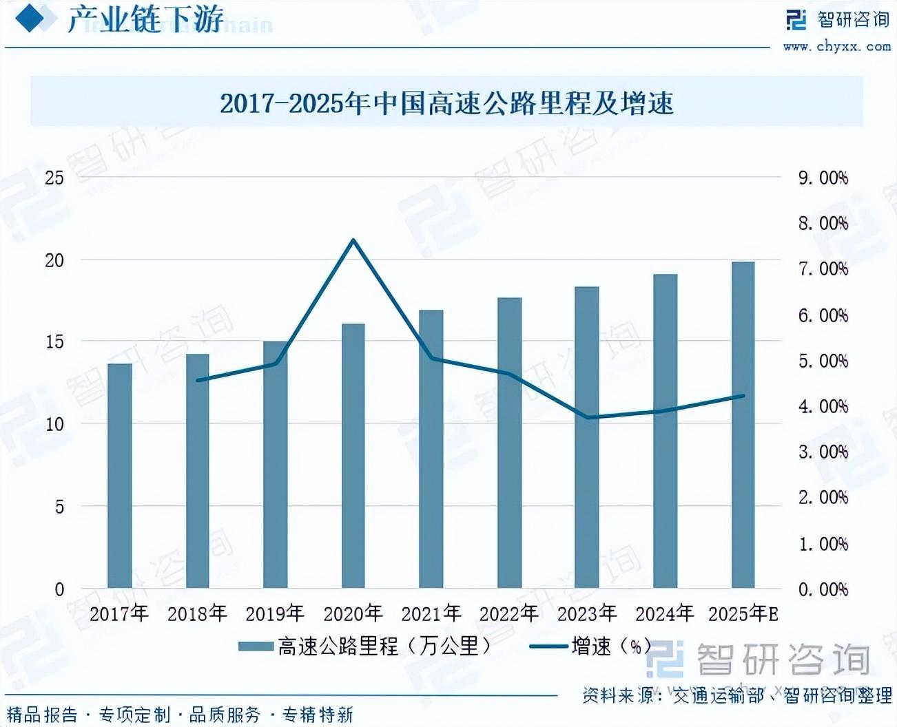 高速公路是沥青的重要应用领域,沥青路面作为典型的柔性路面,具备行车平稳舒适、噪音较低、开放交通速度快且局部修补便捷等突出优点。同时,其表面独特的纹理结构能有效提升雨天轮胎抓地力,缩短刹车距离,增强行车安全性。近年来,我国高速公路建设持续推进,路网规模快速扩张。截至2024年底,我国建成了全球最大的高速公路网,33条国家高速公路主线基本贯通,高速公路里程达19.1万公里,覆盖了99%的20万以上人口城市。交通运输部预计,2025年中国高速公路里程将达到19.87万公里。未来,随着高速公路网络的持续加密优化、既有路网的周期性养护与改扩建需求不断释放,以及“交通强国”等国家战略的深入推进,我国沥青行业将迎来稳定而持续的市场需求。