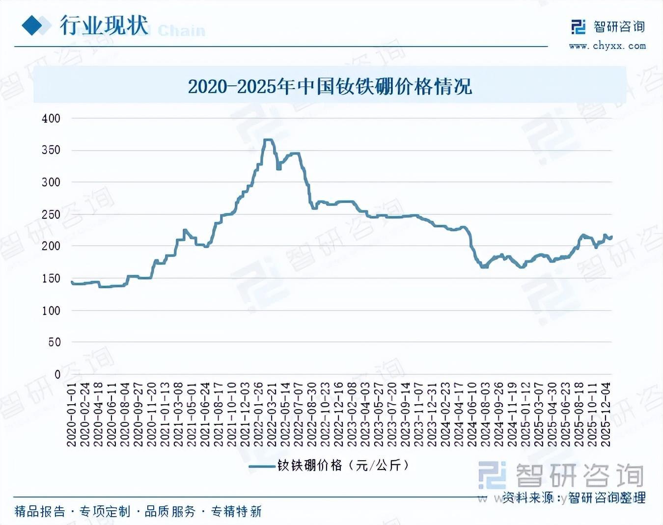 钕铁硼是到目前为止磁性最强的永磁材料,被誉为“现代永磁之王”。截至2025年底,中国钕铁硼价格为214.5元/公斤,同比增长28.06%。这一关键原材料的价格飙升,对以磁悬浮风力发电机为代表的新兴产业构成了严峻的成本挑战——其两大核心系统均高度依赖高性能钕铁硼:磁悬浮轴承系统需凭借其产生强大而稳定的悬浮力以消除摩擦;永磁直驱发电机更依赖其构建高效率的磁场以实现能量转换。因此,钕铁硼价格的快速上涨,直接导致了磁悬浮风力发电机生产成本的显著上升。
