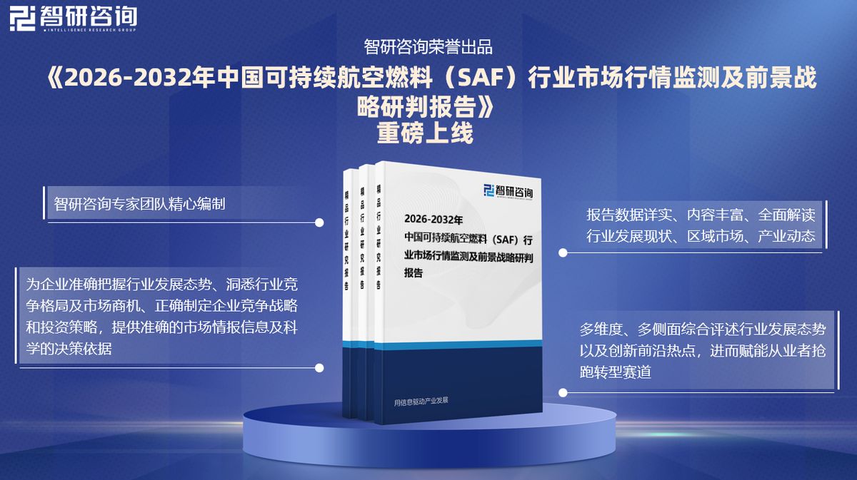 为探究可持续航空燃料(SAF)行业变化趋势(怎么变)、用户需求(要什么)、投放选择(投向哪)、运营方法(如何投)及实践案例(看一看),智研咨询发布了《2026-2032年中国可持续航空燃料(SAF)行业市场行情监测及前景战略研判报告》。