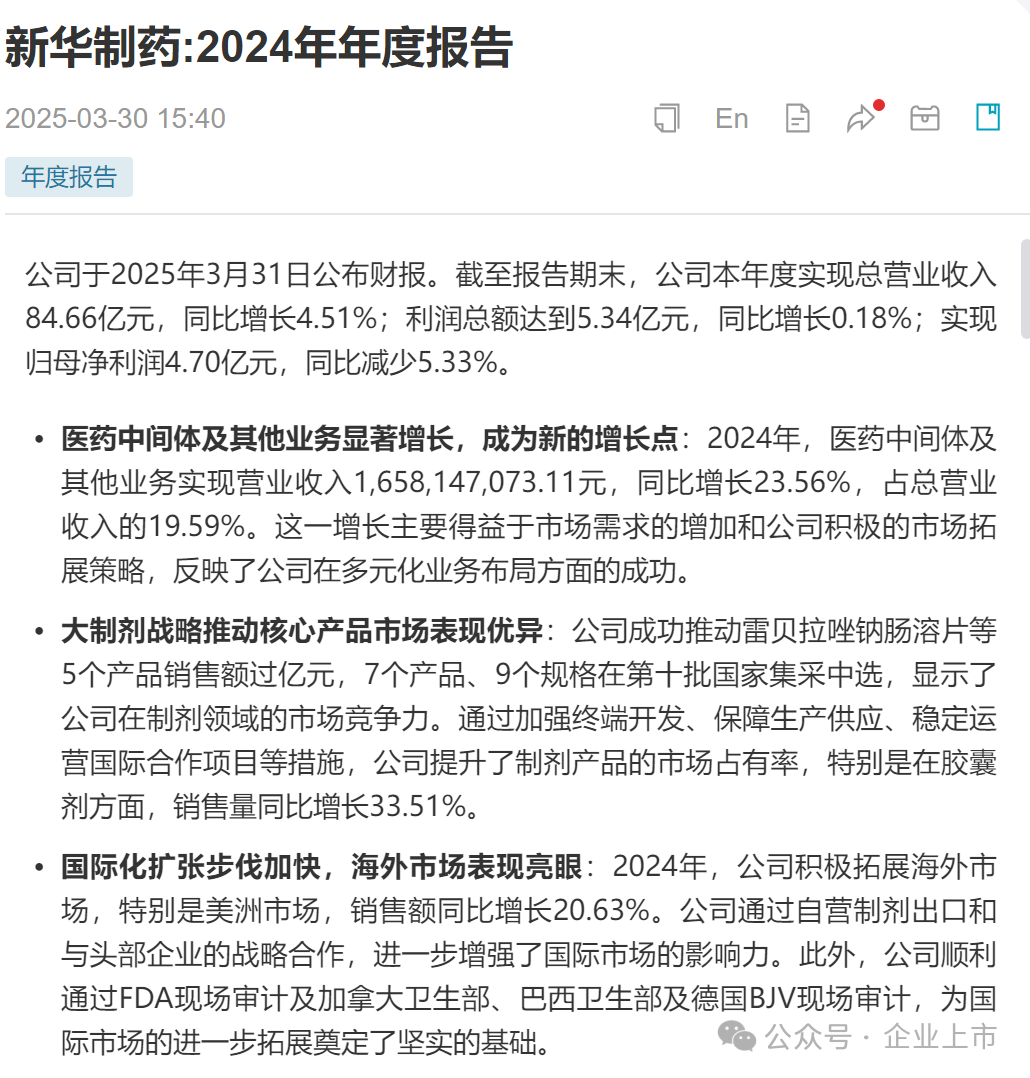 关于前任买方新华制药: