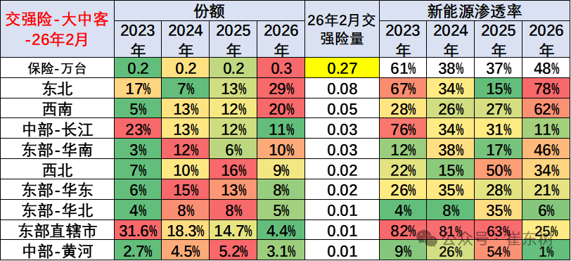 新能源大中客市场渗透率较高的主要是南方地区,其它地区看政策补贴,今年的东北的公交电动化份额提升较大。