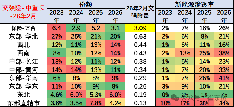 今年新能源重卡在华南、西南等地区渗透率表现较好,其中华南的渗透率提升较快。