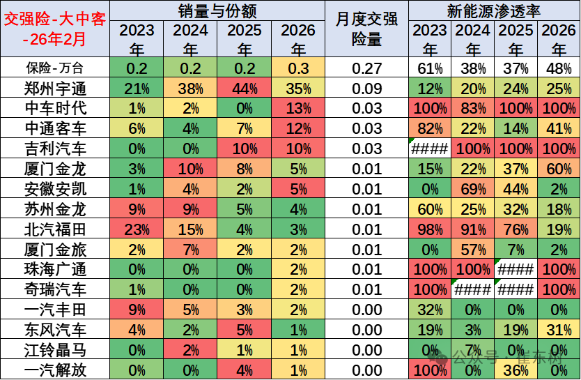 新能源大中客渗透率高的企业主要是二线企业,主力企业都是燃油车的新能源全面发展的,且主力企业的燃油车市场不错。