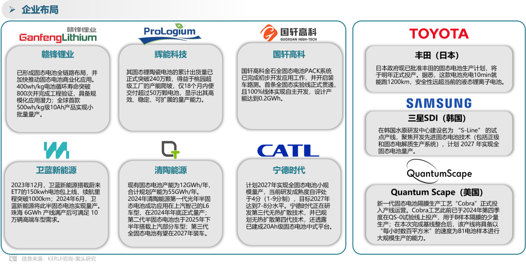 现阶段,国内外电池企业纷纷加速自身在固态电池领域的研发速度。