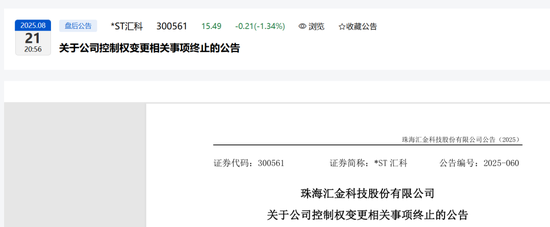 陈喆女士、马铮先生、瑞信投资已于2025年8月21日收到淄博国投的正式函告,被告知收到淄博国投函件时起,《关于珠海汇金科技股份有限公司之股份转让框架协议》《关于珠海汇金科技股份有限公司之股份转让协议》《保证金协议》《关于珠海汇金科技有限公司之股份转让协议之补充协议一》正式解除。
