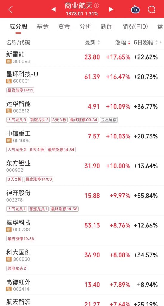 商业航天板块走强