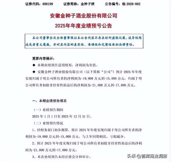 在2026年1月19号晚上,其发布了自己的2025年业绩预告,这也成为当时A股酒企中的第三份年度业绩预告。