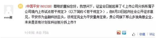 自上周五晚证监会发布《上市公司分拆所属子公司境内上市试点若干规定》(下称“新规”)到今日下午五点,沪、深两个投资者互动平台涉及分拆的投资者提问已达到224条,如此密集,实属少见。