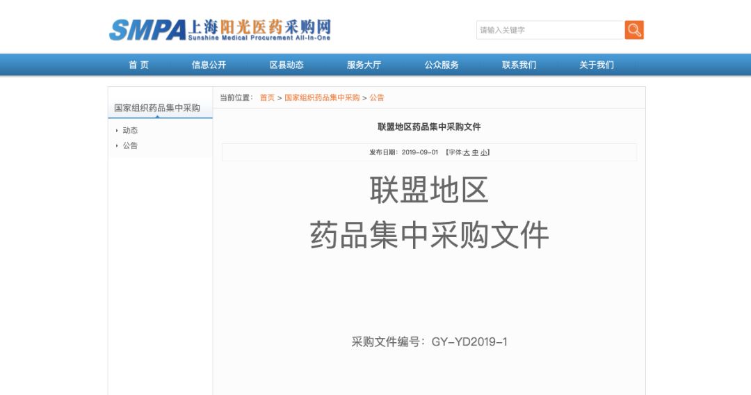 9月1日,上海阳光医药网公布了上海市医药集中招标采购事务管理所联合采购办公室发布的《联盟地区药品集中采购文件》。在4+7城市及已跟进落实省份执行集中采购结果的基础上,国家组织相关地区形成联盟,依法合规开展跨区域联盟药品集中带量采购。