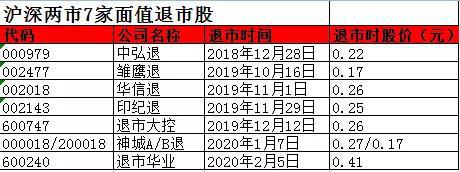 2018年以来,沪深两市已有7家公司因连续20个交易日股价低于面值而终止上市,面值退市已成为主要退市渠道。