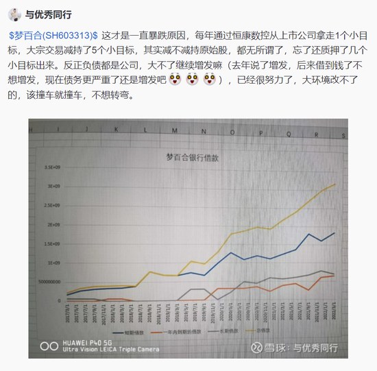 今年以来,梦百合股价下跌35.99%。对此,一股民在雪球上发帖称,股价大跌的原因是,“每年通过恒康数控从上市公司拿走1个小目标,大宗交易减持了5个小目标,其实减不减持原始股,都无所谓了,忘了还质押了几个小目标出来。反正负债都是公司,大不了继续增发嘛(去年说了增发,后来借到钱了不想增发,现在债务更严重了还是增发吧),已经很努力了,大环境改不了的,该撞车就撞车,不想转弯。”