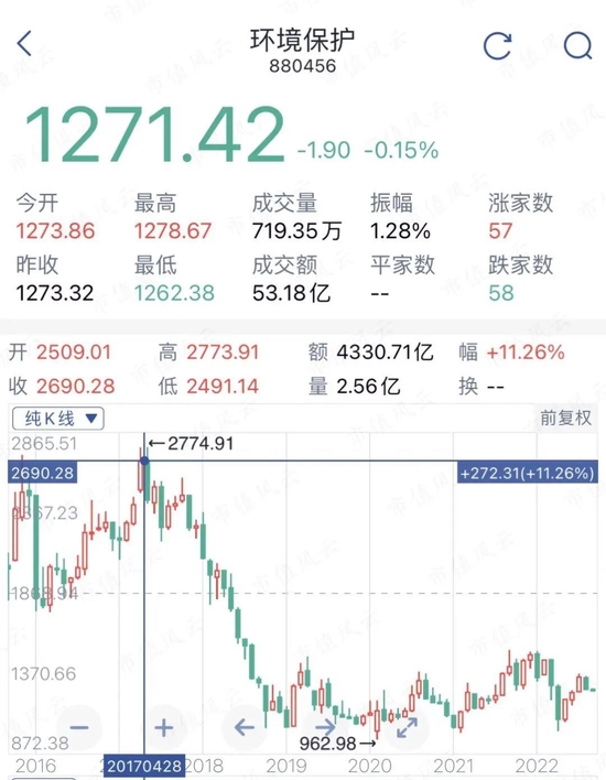 而环保行业巨头东方园林(维权)也陨落,整个环保板块陷入低迷。