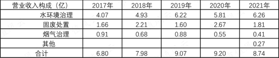 其中,水处理业务的营业收入是最大的,其次依次是固废处置、烟气治理。