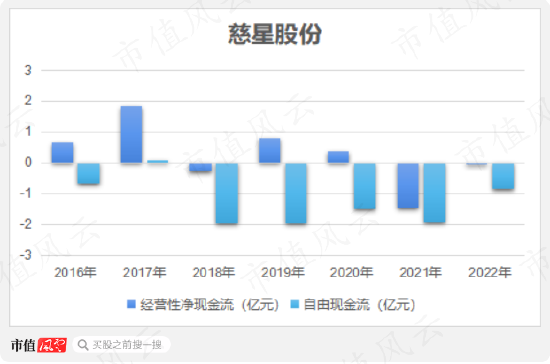 自由现金流基本上连年为负,2016年至今累计净流出8.84亿。