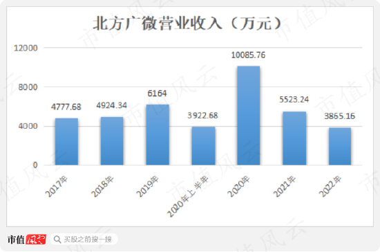 好巧不巧,北方广微被收购后就立马变脸,营业收入大幅下滑,2022年仅有3,865万,利润两年连亏2,406万。