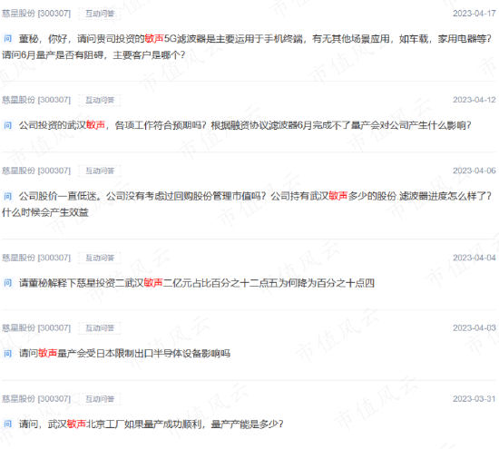 最近,广受关注的是一家武汉敏声新技术有限公司(以下简称“武汉敏声”),也反复出现在互动易平台中。