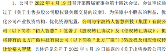 3月21日,慈星股份(维权)(300307.SZ)发布了一则资产出售公告,拟作价1.32亿将北方广微35%股权及相应债权,出售给控股股东裕人智慧。
