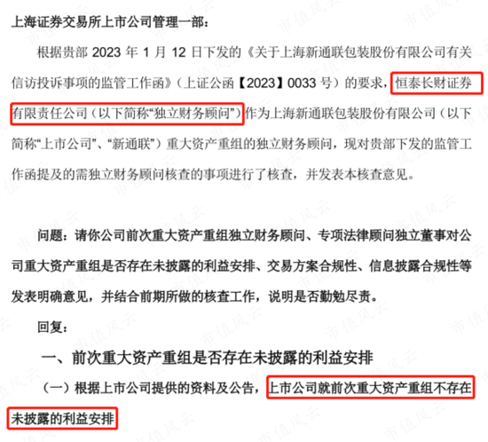 (来源:恒泰长财证券有限责任公司关于上海证券交易所《关于上海新通联包装股份有限公司有关信访投诉事项的监管工作函》相关问题的核查意见)