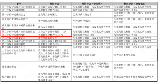 同时,买卖双方还就公司非公开发行股份募集资金、收购华坤道威数据剩余49%股权、资产置出等多项安排达成框架协议。各方还约定,重大资产重组交易对价所需资金均由孟宪坤方负责解决。