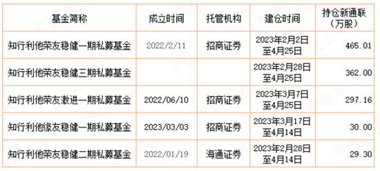 公开市场信息显示,知行利成立于2021年9月13日,目前规模总规模不到10亿元;实际控制人为张世远,在中国基金业协会备案的基金为4只,另外一只未备案的“知行利他荣友稳健三期私募基金”持有新通联362万股。