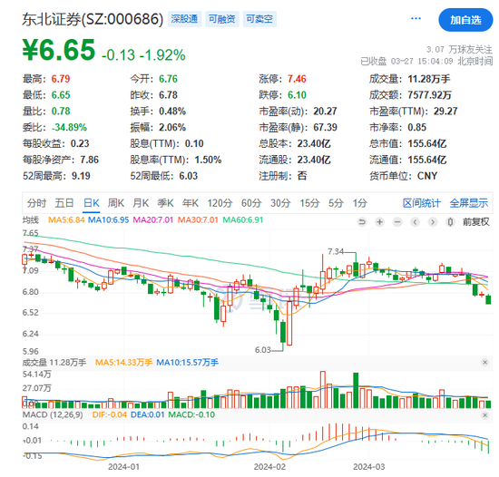 公开信息显示,东北证券前身为吉林省证券公司,成立于1988年。2000年6月经证监会批准,经过增资扩股成立东北证券有限责任公司。2007年8月,东北证券在深交所挂牌上市,当前总市值为156亿元。