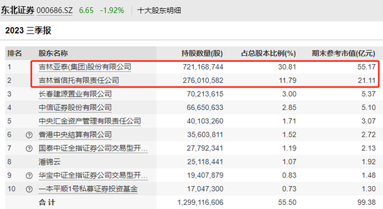 2023年三季报显示,亚泰集团合计持有东北证券30.81%股份,系东北证券第一大股东。如该次转让顺利完成,长发集团将直接持有东北证券20.81%股份,拿下第一大股东之位。吉林信托持有东北证券11.79%股份,继续保持第二大股东席位。长春市金控持股9%,将成为东北证券第三大股东。亚泰集团则仅保留1%股份,不再属于东北证券的主要股东。
