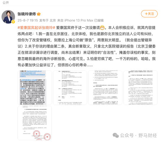 爱康国宾在7月30日的说明会上进行了强力回击。资深副总裁周晓江宣布,已向法院起诉张晓玲并获立案。爱康国宾称张律师“罔顾事实造谣,污蔑爱康‘假体检’”,严重损害了公司声誉,伤害了数万员工,并误导了公众对私营体检行业的认知。