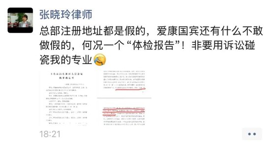 体检引发的法律攻防战正式拉开序幕,张晓玲律师当时就在微博写道:爱康国宾终于这一次没撒谎,本人会积极应诉。