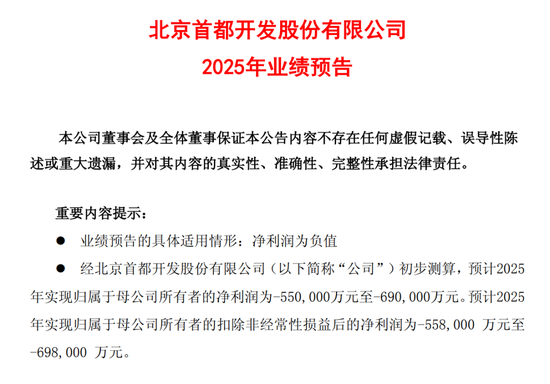今年1月,首开股份公布了2025年业绩预告,情况依然不容乐观。