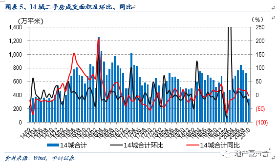 (二)二手房成交量:上周14城周成交环比+7%,10月月成交同比-2%、较上月-20pct