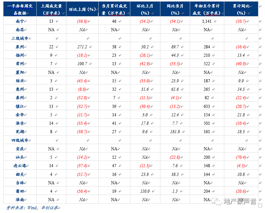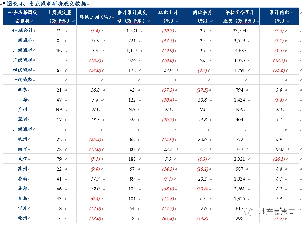 注:四线城市牡丹江于18年9月开始不再公布成交数据,故删除,截至目前我们高频跟踪的城市为45城。