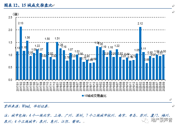 注:18年9月末开始宁波可售面积数据异常、变动较大,故剔除,以15城口径计算去化月数和成交推盘比。