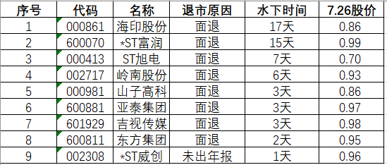 截至7月26日收盘的时候,今年以来已有47只股票退市,包括45只A股和2只B股。从退市原因来看,因为股价连续20个交易日低于1元,触发了面值退市的一共33只,占全部退市公司中的约四分之三。从这点也能看出来,叠加了政策引导和行情惨淡的多重原因,面值退市制度在今年爆发出了巨大威力。