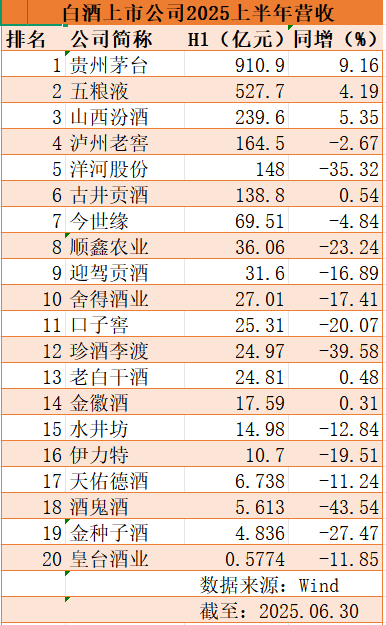 8月29日晚间,泸州老窖(000568.SZ)、古井贡酒(000596.SZ)发布了半年报,至此,白酒类上市公司(包含港股上市的珍酒李渡)2025年中期业绩全部披露。因为青海春天(600381.SH)、岩石股份(600696.SH)股价均被ST,这里暂不讨论。