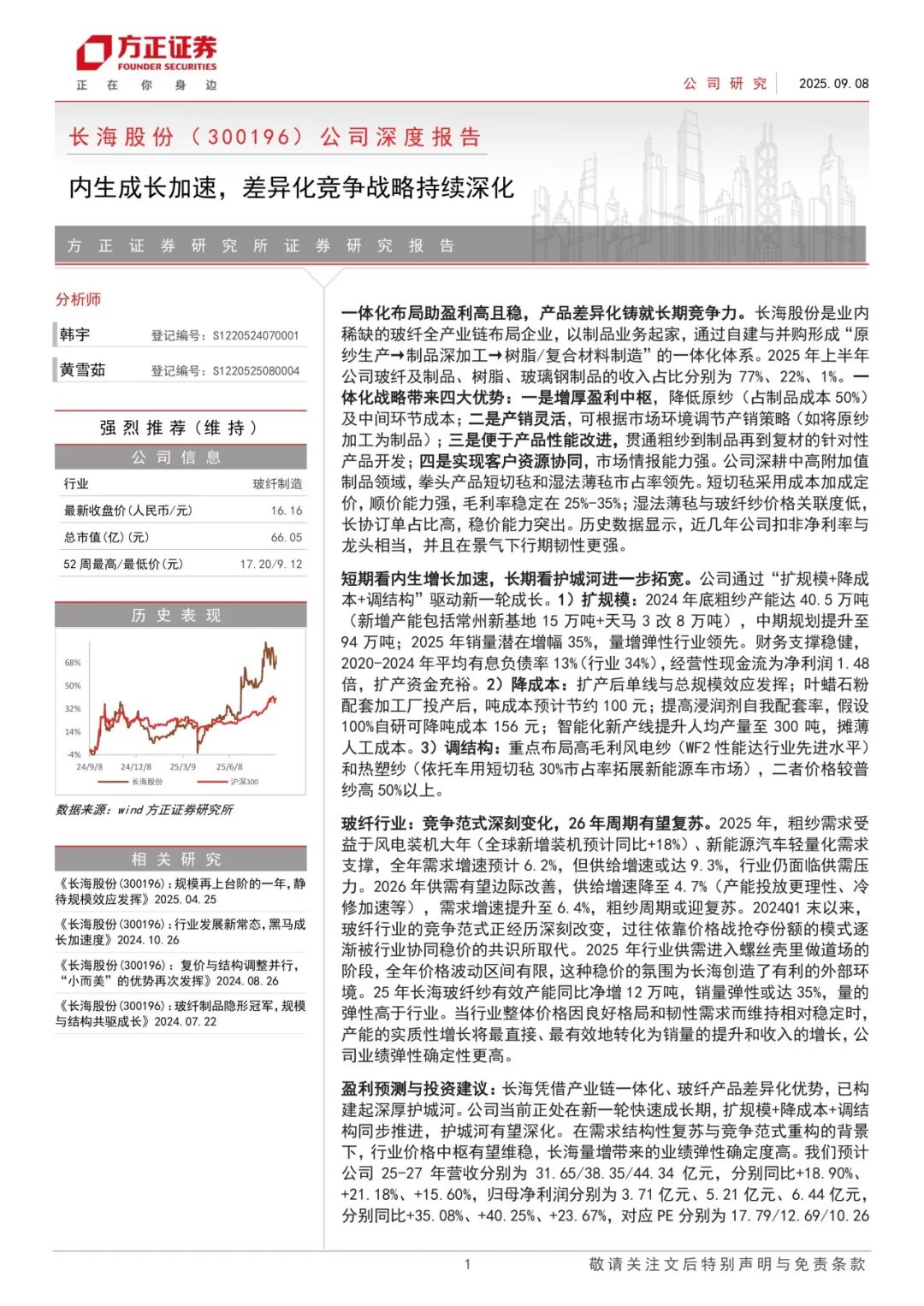 本文来自方正证券研究所于2025年9月9日发布的报告《长海股份(300196):内生成长加速,差异化竞争战略持续深化》,欲了解具体内容,请阅读报告原文。