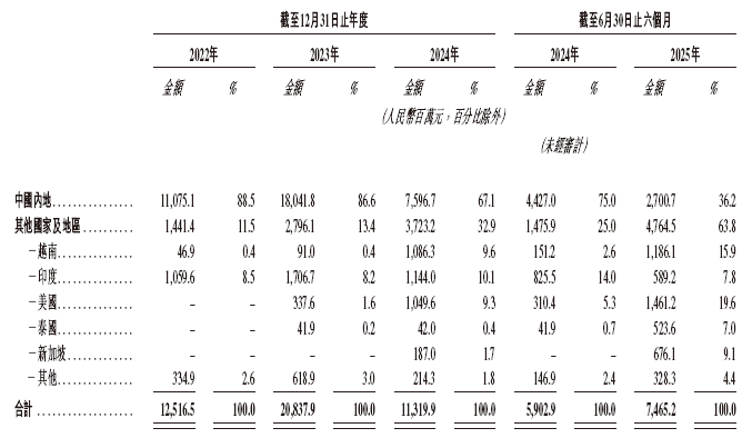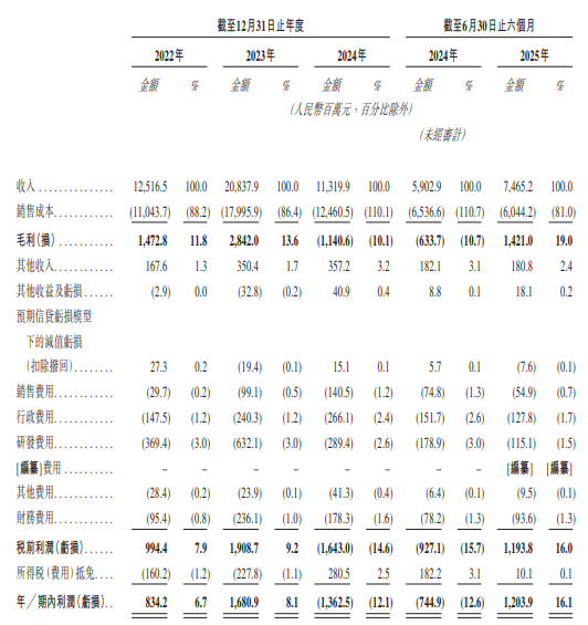 招股书显示,在过去的2022年、2023年、2024年和2025年前六个月,中润光能的营业收入分别为人民币125.17亿、208.38亿、113.20亿和74.65亿元,相应的净利润分别为人民币8.34亿、16.81亿、-13.63亿和12.04亿元。