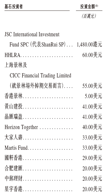 奇瑞汽车是次IPO招股引入13名基石投资者,合共认购5.87亿美元(约45.73亿港元)的发售股份,其中国资基金璟泉善瑞通过JSC认购14.80亿港元,高瓴旗下HHLR认购6000万美元,上海景林(中金掉期)认购5500万美元,香港景林认购500万美元,黄山国资委旗下黄山建投认购4100万美元,晶合集成(688249.SH)通过晶汇瑞盈认购4100万美元,地平线机器人(09660.HK)通过Horizon Together认购4000万美元,大家人寿认购3300万美元,Martis Fund认购3300万美元,国轩高科(002074.SZ)通过国轩香港认购2900万美元,合肥建汇认购2000万美元,中邮理财认购2000万美元,星宇股份(601799.SH)通过星宇香港认购2000万美元。