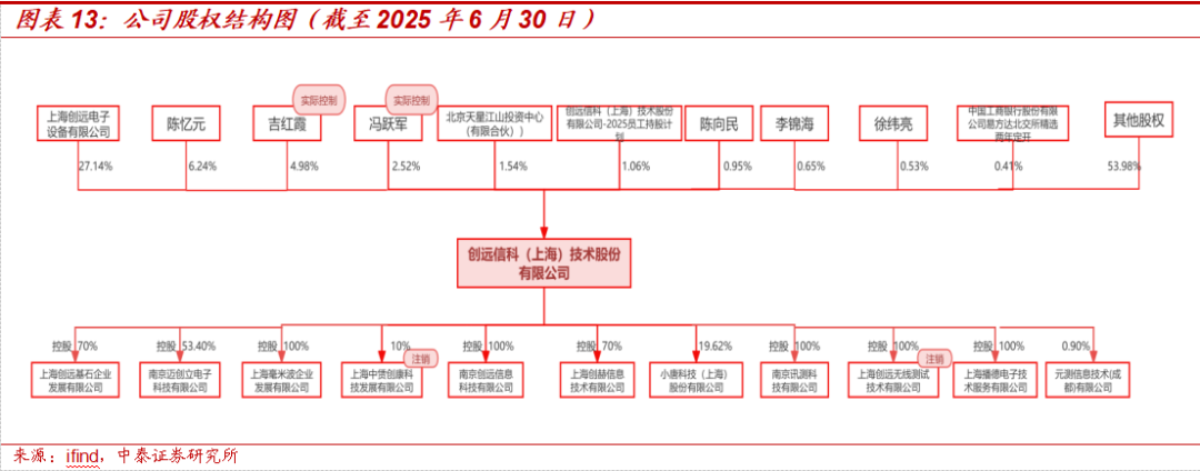 ◼公司股权集中,实控人掌控核心决策权。截至2025年6月30日,创远信科实际控制人为冯跃军、吉红霞夫妇,二人通过直接持股及上海创远电子设备有限公司间接持股,合计控制公司34.64%股权。前十大股东合计持股比例为46.02%,无股权质押,前两大股东暂无公开减持计划,股权结构集中且稳定。