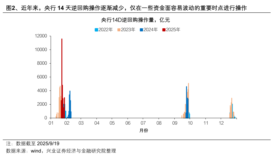 2025年9月19日,央行发布公告称“即日起,公开市场14天期逆回购操作调整为固定数量、利率招标、多重价位中标,操作时间和规模将根据流动性管理需要确定”,我们对此点评如下: