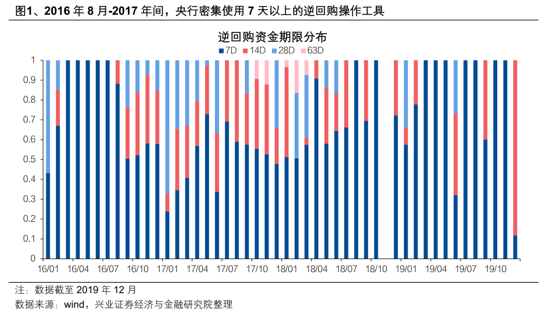 2016年以来,央行14天逆回购操作的功能从“锁短放长”的工具向重要时点的流动投放工具演变。1)2016年8月-2017年间,央行密集使用7天以上的逆回购操作工具,实施“锁短放长”,抬升资金成本,助力金融去杠杆。2)2018年以后,央行OMO操作逐渐回归到以7天逆回购操作为主,28天和63天逆回购逐渐淡出,14天逆回购操作逐渐减少,仅在一些资金面容易波动的重要时点进行操作,如跨春节,跨“十一”时点,跨年时点等。