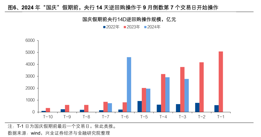 9月央行14天逆回购操作或提前重启,体现央行呵护资金面态度,跨季资金面波动风险有望降低。9月19日的央行公告并未明示14天逆回购操作何时重启。但根据《金融时报》当晚刊文中提及“本次14天期逆回购操作的启动时点略早于往年,使得实际占款日达到17天”推测,若9月22日央行重启14天逆回购操作,则今年“十一”假期前的央行14天逆回购于假期前倒数第8个交易日开始操作。对比2025年春节假期前倒数第6个交易日开始操作,2024年“十一”假期前倒数第7个交易日开始操作,今年“十一”假期前的央行14天逆回购操作时间可能更为提前,叠加9月央行买断式逆回购净投放3000亿元,体现央行整体呵护资金面的态度。