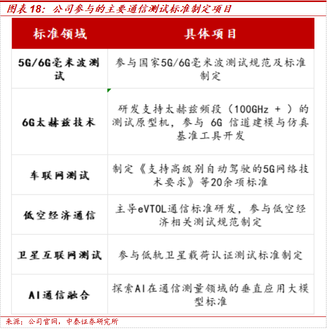 2)公司竞争优势:①专利覆盖全产业链,构建技术护城河。截至2025年6月30日,公司累计已申请专利536项,其中发明专利370项,拥有软件著作权179项,拥有授权专利共308项,拥有国内外商标70项。②技术研发领先,参与制定行业标准。公司承担多项国家级、市级研发任务,参与了国家5G、6G毫米波测试规范及标准制定,并积极布局6G测试,增强长期核心竞争力。